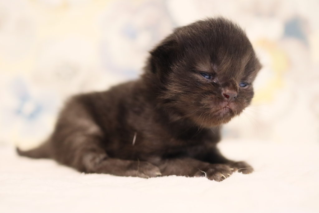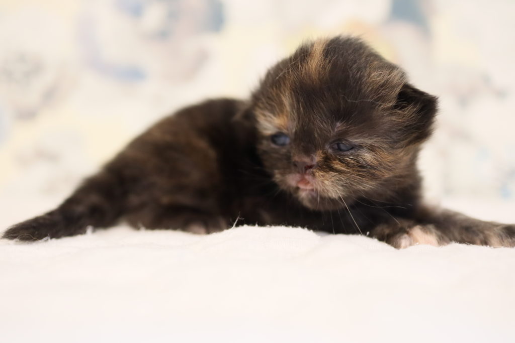 生後13日、目が開いてすくすく成長しています。ママはつばきママ・パパはサフランです。